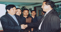 梅安富先生軍人出身(曾經在中國馬蘭核試驗基地工作十多年,為核武器發展做出了卓越貢獻、被評為八級軍殘)、高級經濟師、中共優秀黨員、天臺山人氏,F任中共鄭州臺州商會支部委員會書記、常務副會長兼秘書長、河南省保健品協會副會長、全國政協副主席、中共中央委員、中國殘聯主席鄧樸方先生與鄭州臺州商會支部書記兼秘書長、《百花散》傳人梅安富先生親切交談鄭州市腫瘤康復協會名譽會長。2005年5月,作為臺州古代中醫秘方梅氏《百花散》